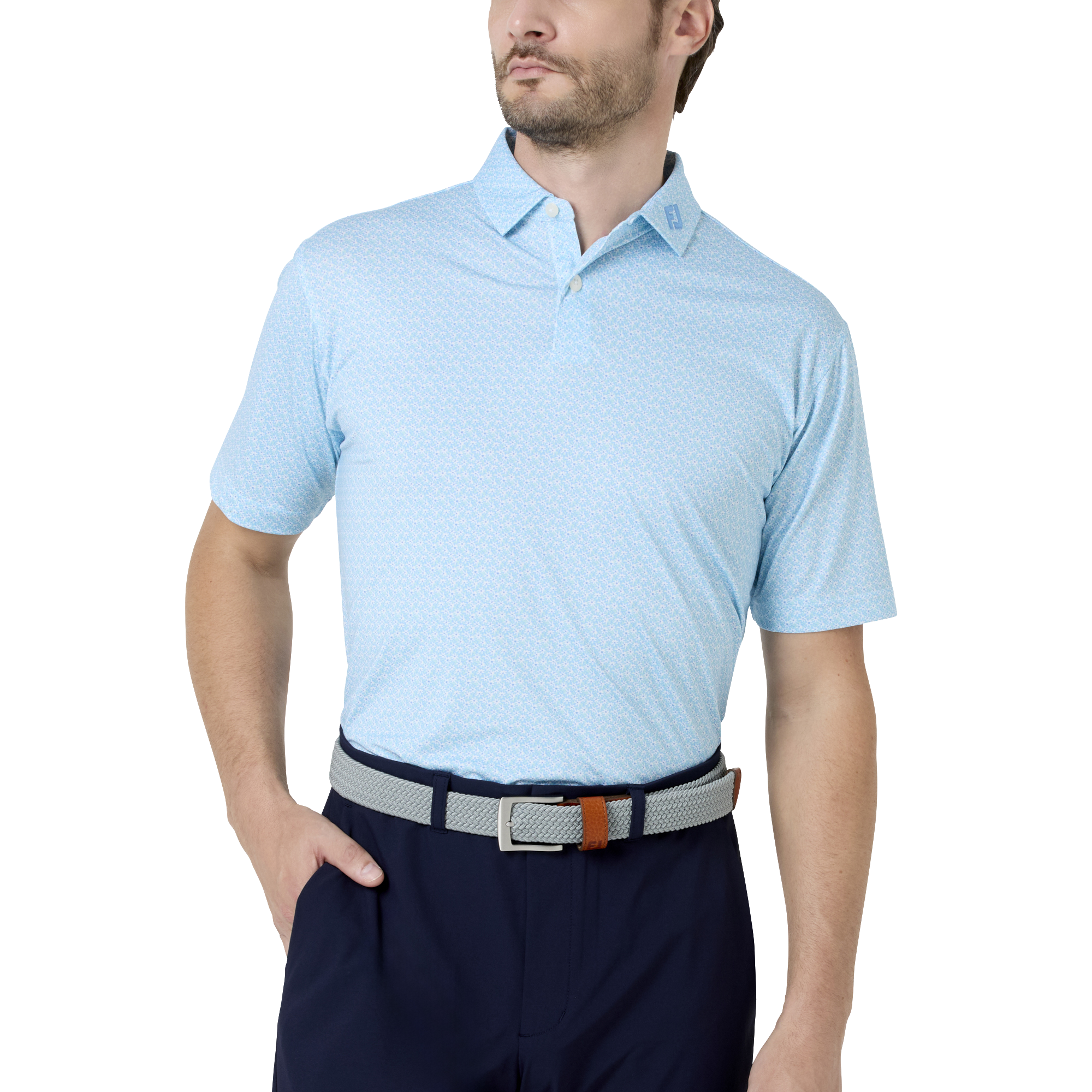 計算されたフローラル柄と高機能ストレッチ素材。吸湿速乾・抗菌・UVカット機能で快適さを保ち、オンコースでも自分らしいスタイルを表現できるプレミアムシャツ。