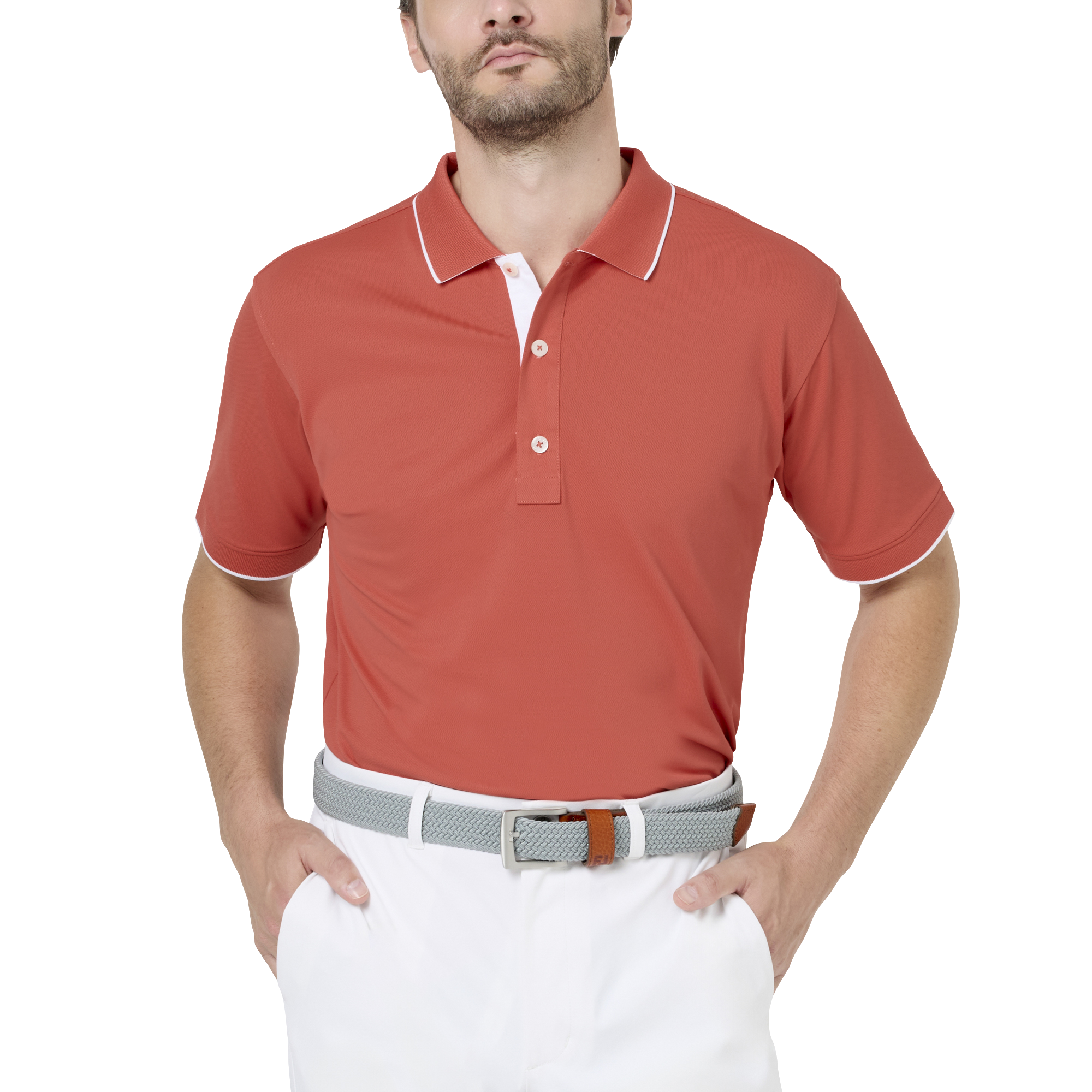 UVカット・吸湿速乾・抗菌防臭を備えたストレッチ鹿の子素材を採用。立体的な設計とロゴジャカードが、クラシックで洗練された印象を演出。
