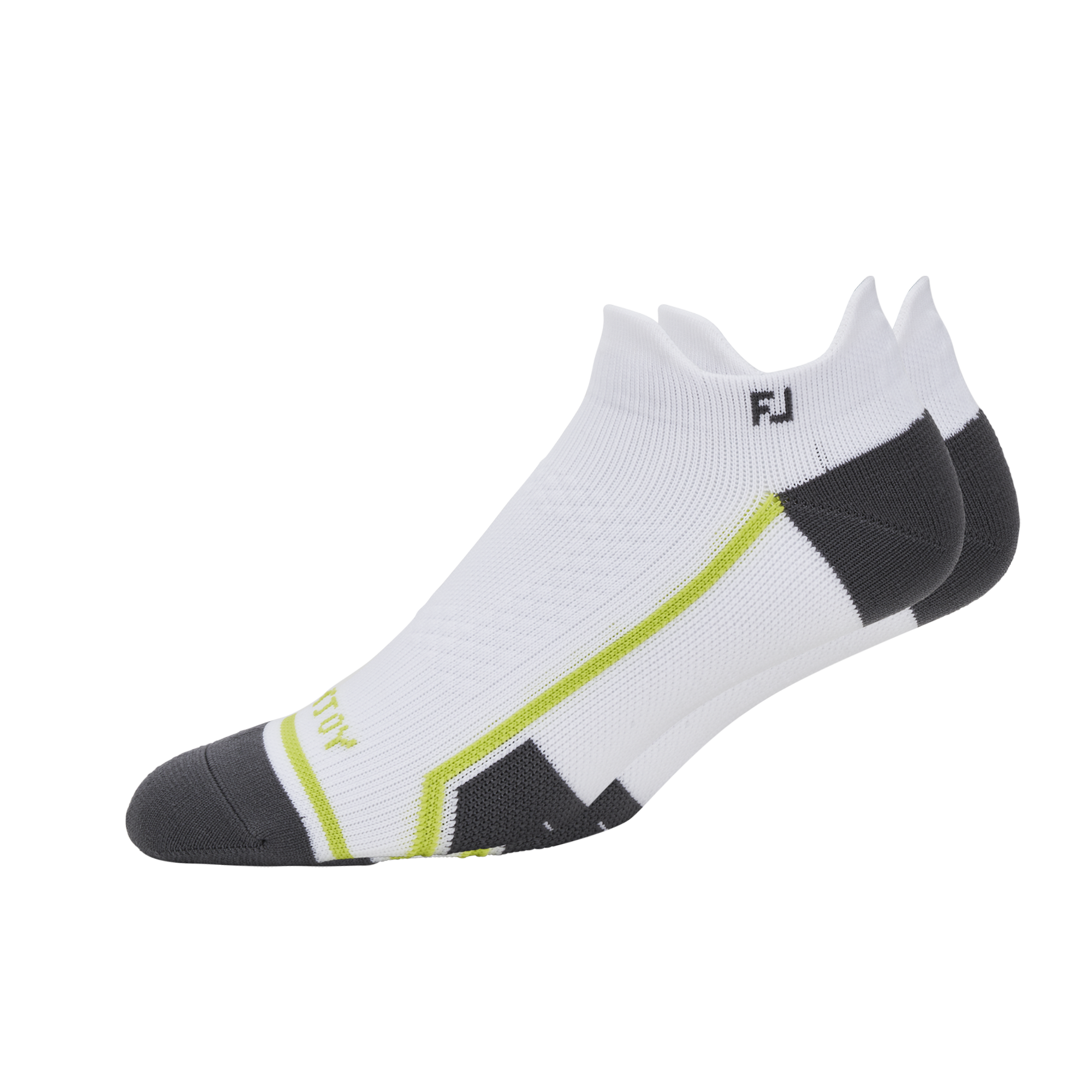 全体的に編み組織を工夫しコンプレッション機能を持たせたフィット性重視のソックス。足裏はパイル構造にすることでクッション性を向上しています。履き口のデュアルタブ構造によりシューズとの摩擦から足首を保護します。