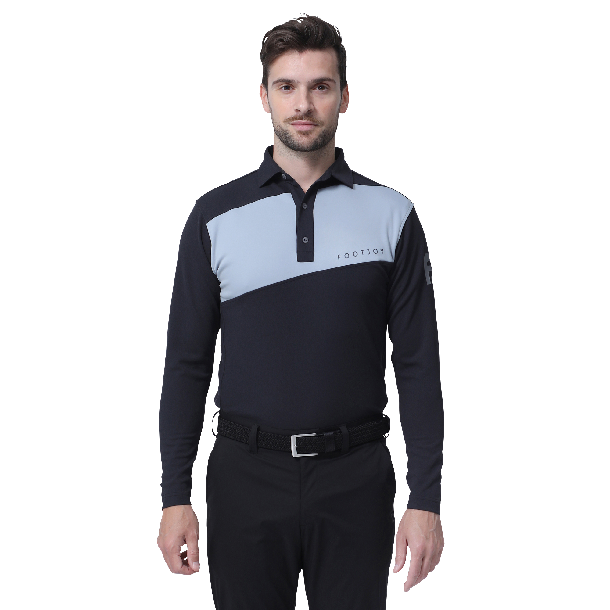 斜めに入れたカラーブロックと袖に入ったFJビッグロゴがスポーティーな印象を与える長袖シャツ。