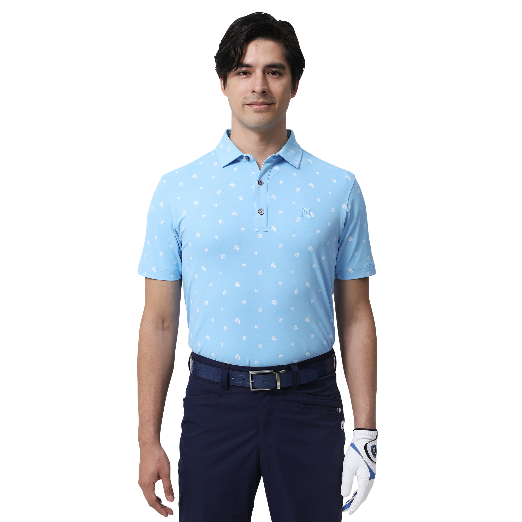 散りばめられたフラワーモチーフが特徴的な半袖ポロシャツ