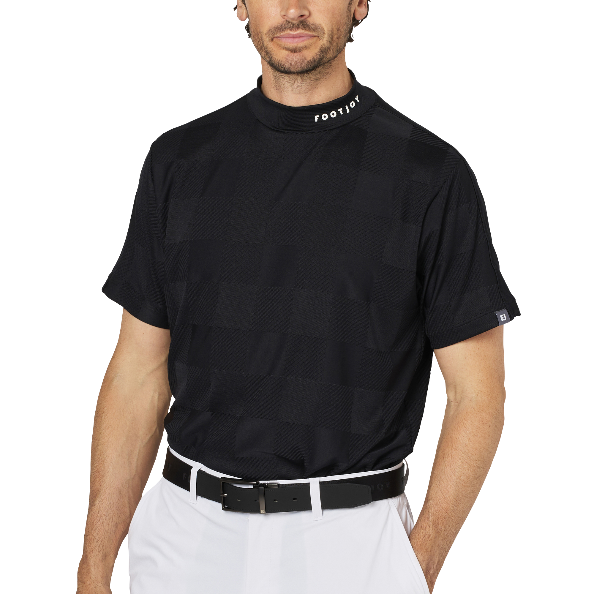 チェックジャカード半袖モックネックシャツ