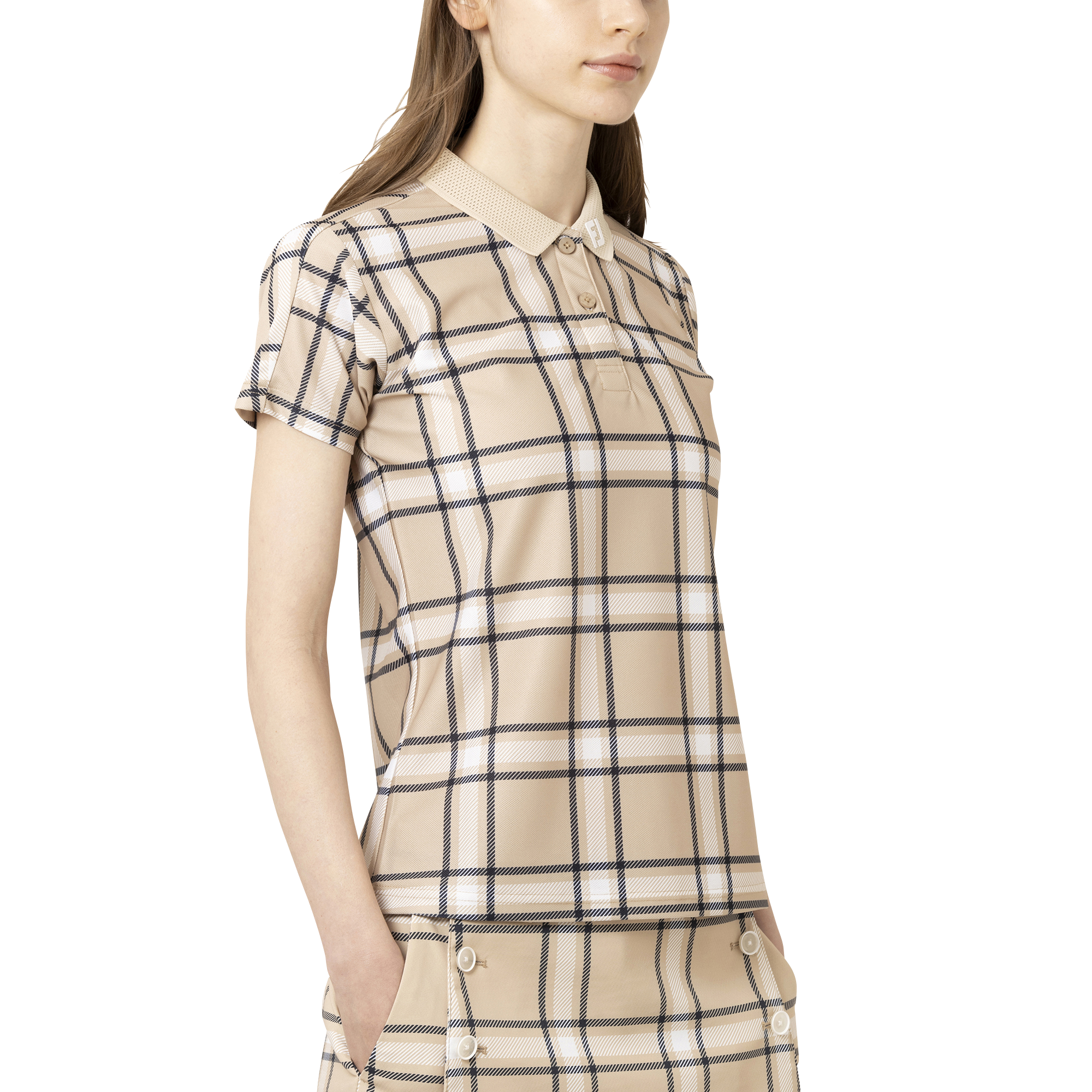 通気性が高く、さらっとした着心地が特徴の鹿の子素材を採用した半袖ポロシャツ。大胆なチェックデザインと襟に採用したメッシュ素材が上品かつ爽やかな印象を演出します。