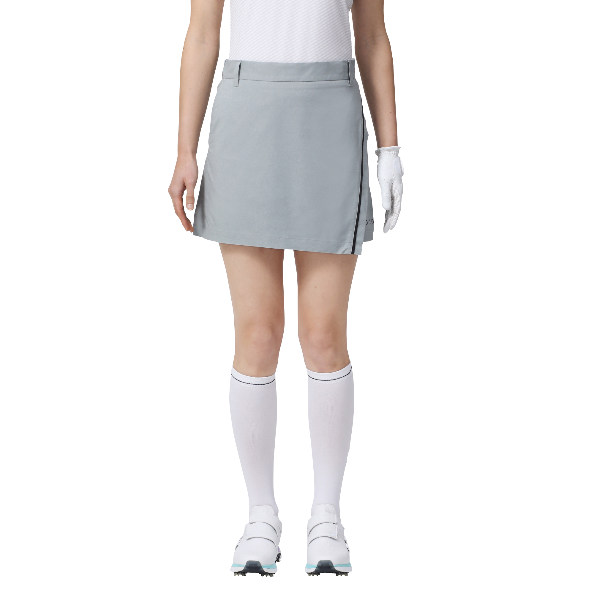 ラップスカートデザインが、アクティブに動いても綺麗なシルエットをキープ。腰裏はフィット感を高めるゴム仕様。