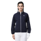 襟裏やファスナーにさり気なくアクセントカラーを利かせたデザイン。首元はアジャスター付きで体温調整も可能。
