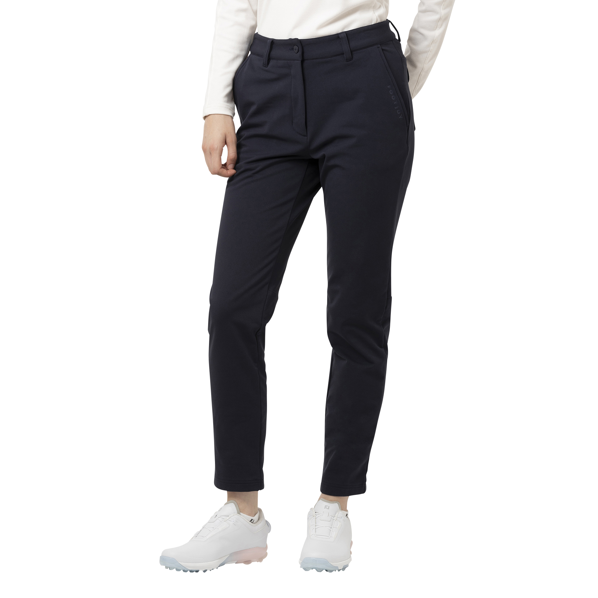 適度なストレッチ性と保温性を備えた素材を採用。シルエットを重視し、高級感と動きやすさを備えたパンツ。ゴルフシーン以外でも日常使いしやすい一着。