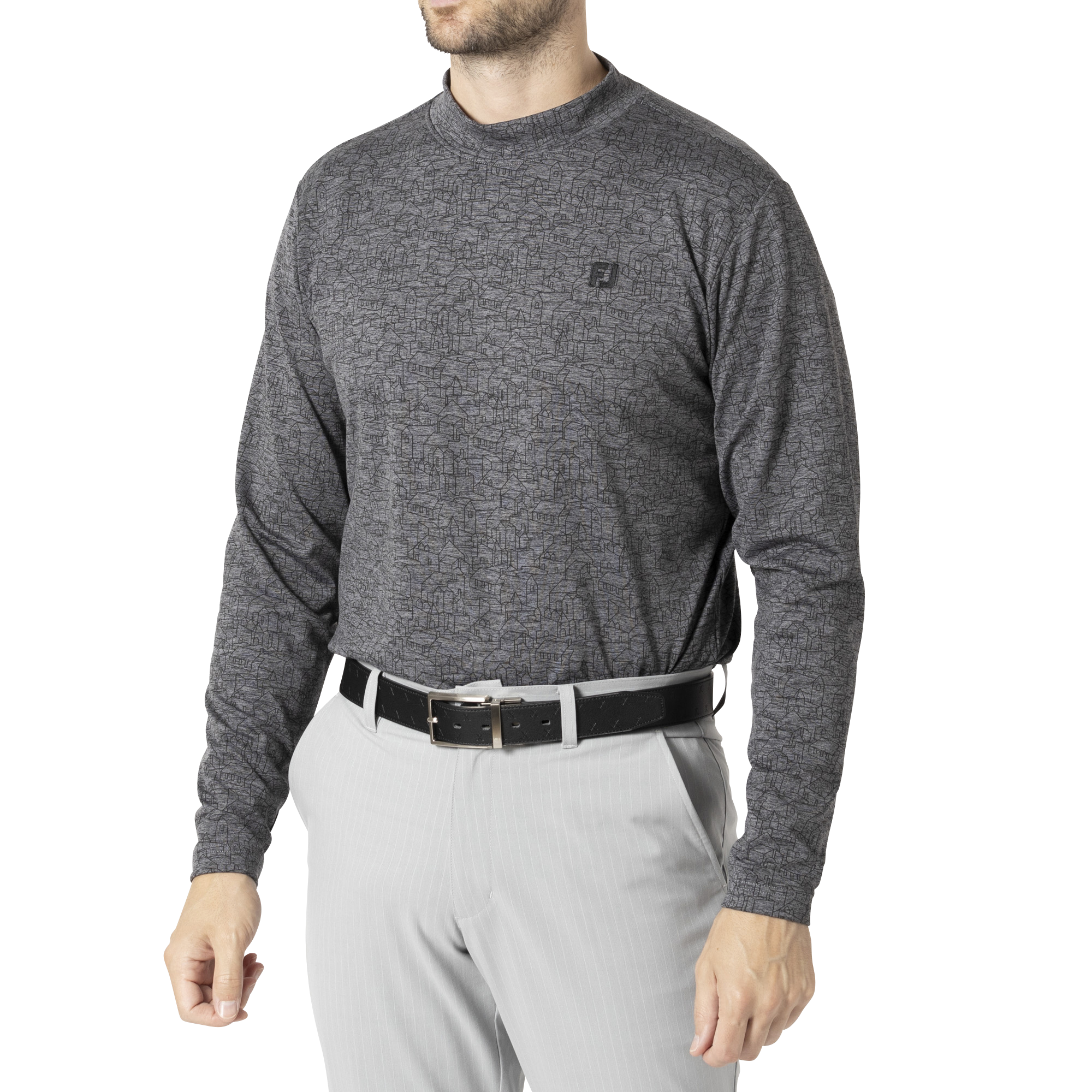 世界のツアーで高い着用率を継続し、フットジョイが誇る高ストレッチ素材を使用した裏起毛長袖モックネックシャツ。程よい厚みのある素材は保温性が高く、肌触りに優れたなめらかな表面感はストレスの無い快適なスイングを可能にします。スコットランドの街並みが全面に描かれたデザインです。