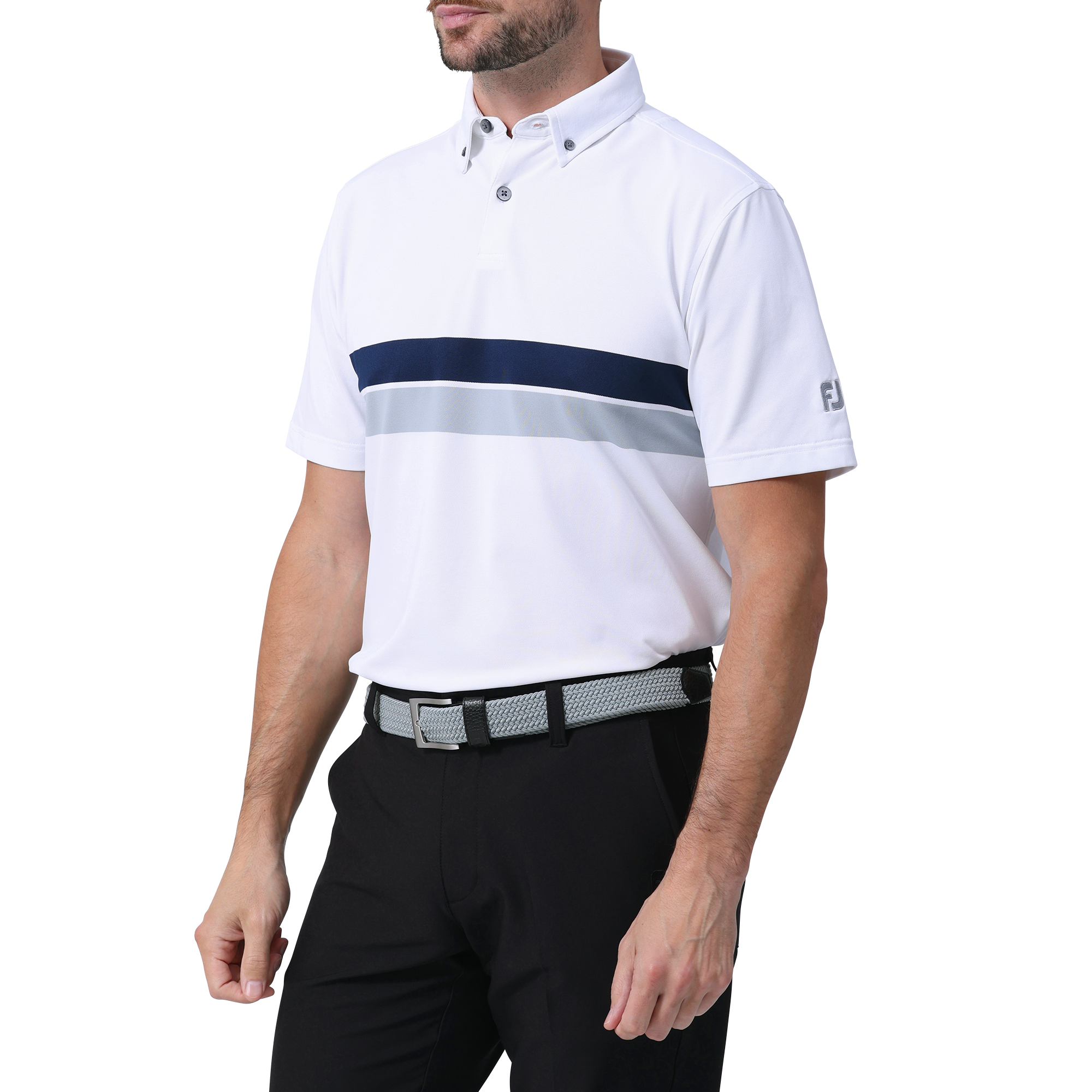 世界のツアーで高い着用率を継続し、フットジョイが誇る高ストレッチ素材を使用した半袖ボタンダウンシャツ。非常に繊細な鹿の子素材がストレスの無い快適なスイングを可能にします。前後身頃のラインは素材の伸縮性を存分に体感できる配色切替えの仕様となっています。