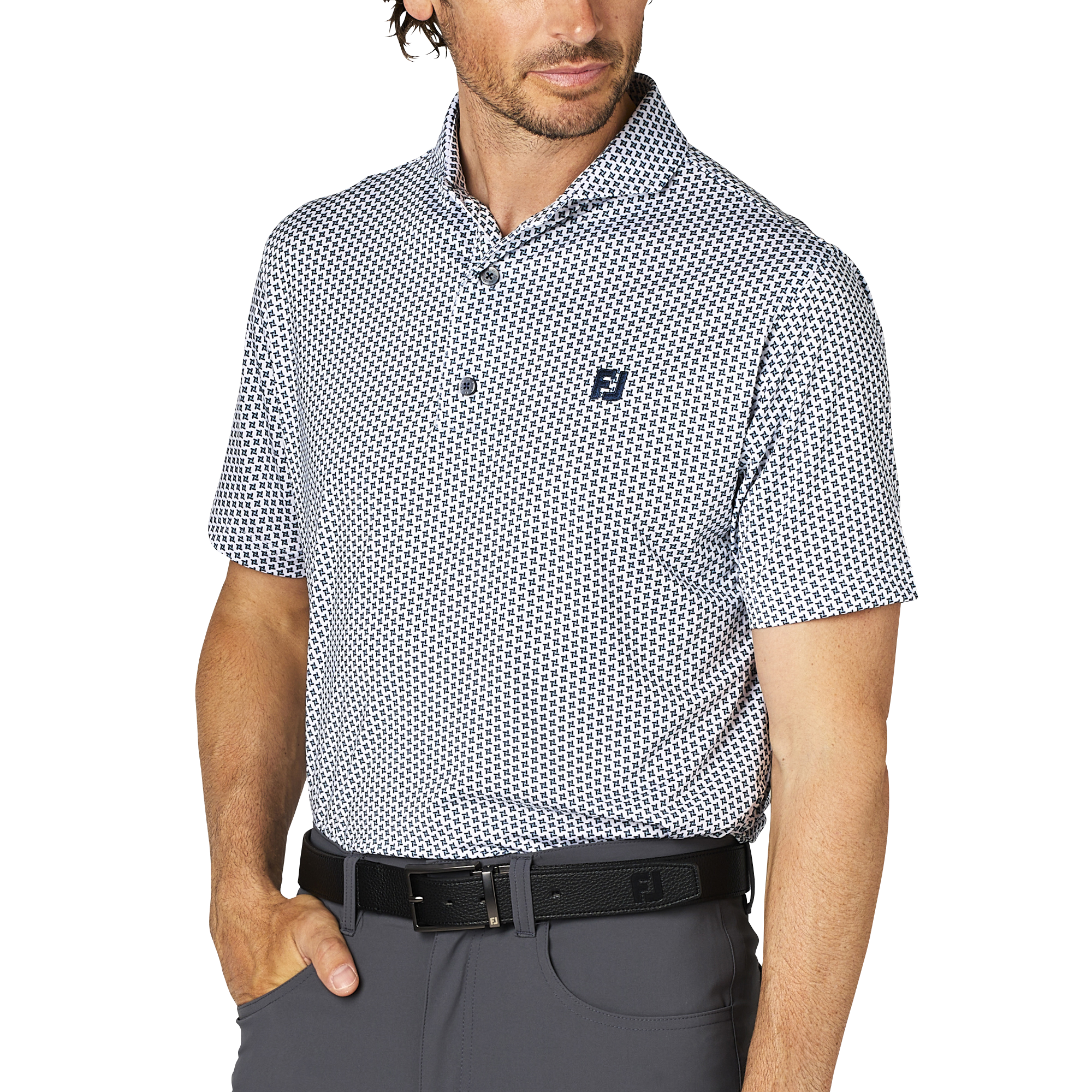 総柄ジオメトリックプリントがゴルフ場でインパクトを与え、ワイドカラーがスマートな首元を演出。肌触りがなめらかで、UVケア、抗菌機能も備えストレスのないスイングをサポートします。