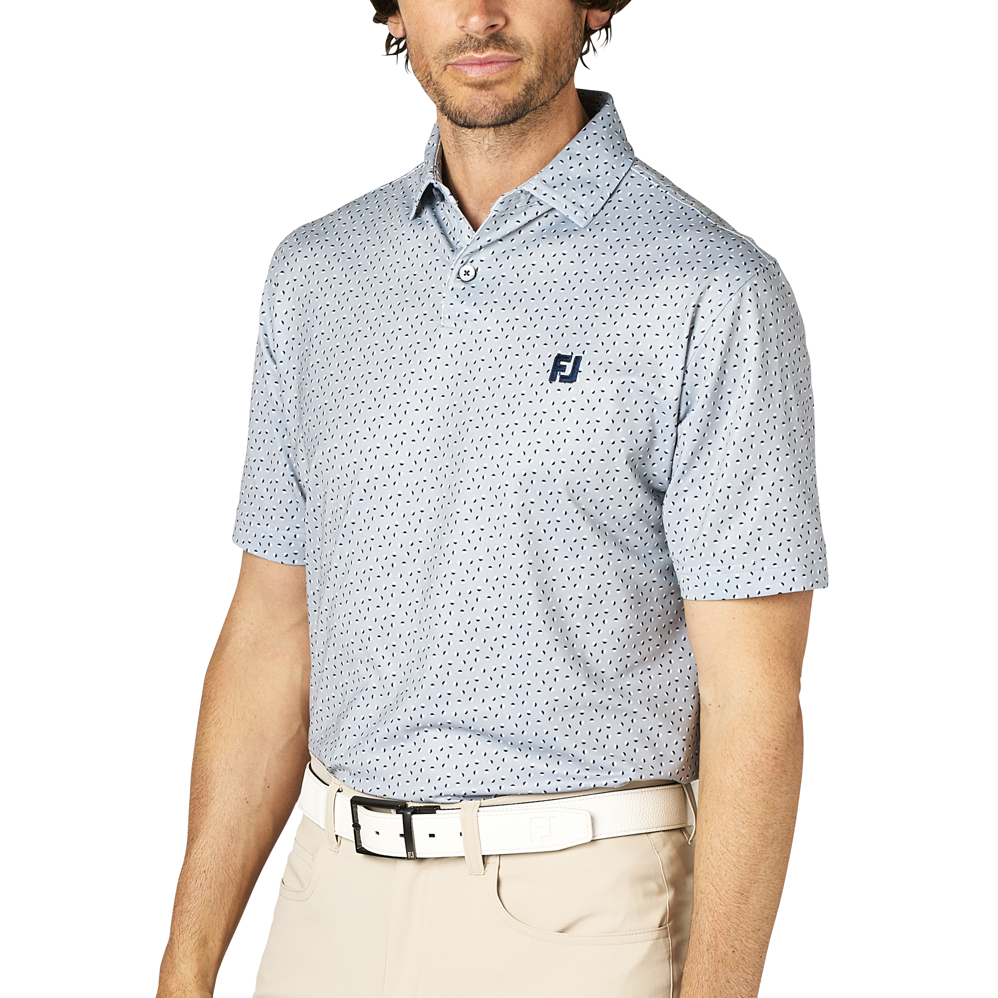 ボールプリントのデザインが目を引き、スポーティでありながらスタイリッシュなデザインが特徴です。UVケア、抗菌機能も備え湿気が多い季節でも快適なプレーを支える1枚です。