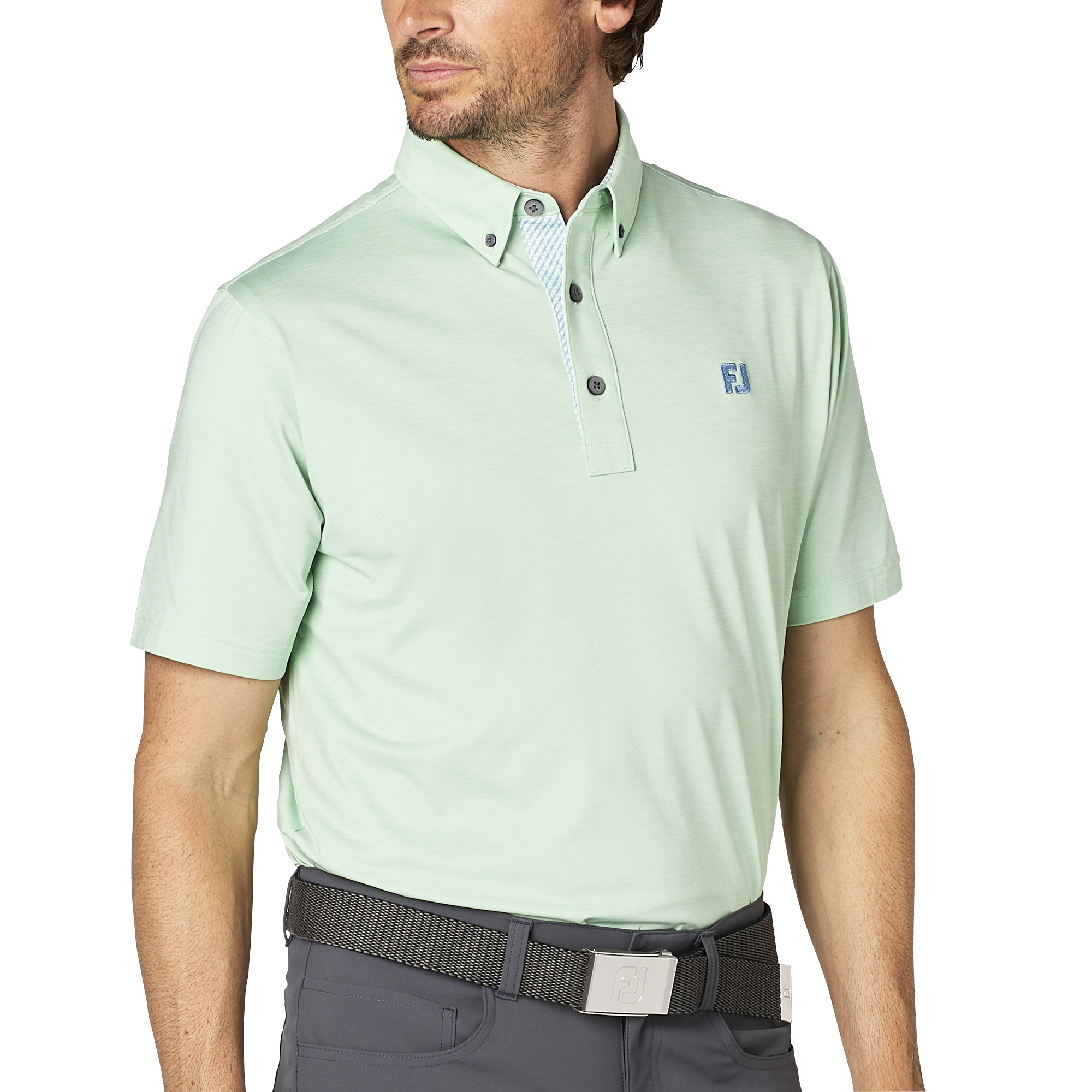 ヘザープリントのデザインが、シンプルながらも洗練された印象を与え、ゴルフ場でも日常でも活用できる一枚。肌触りがなめらかで、UVケア、抗菌機能も備えストレスのないスイングをサポートします。