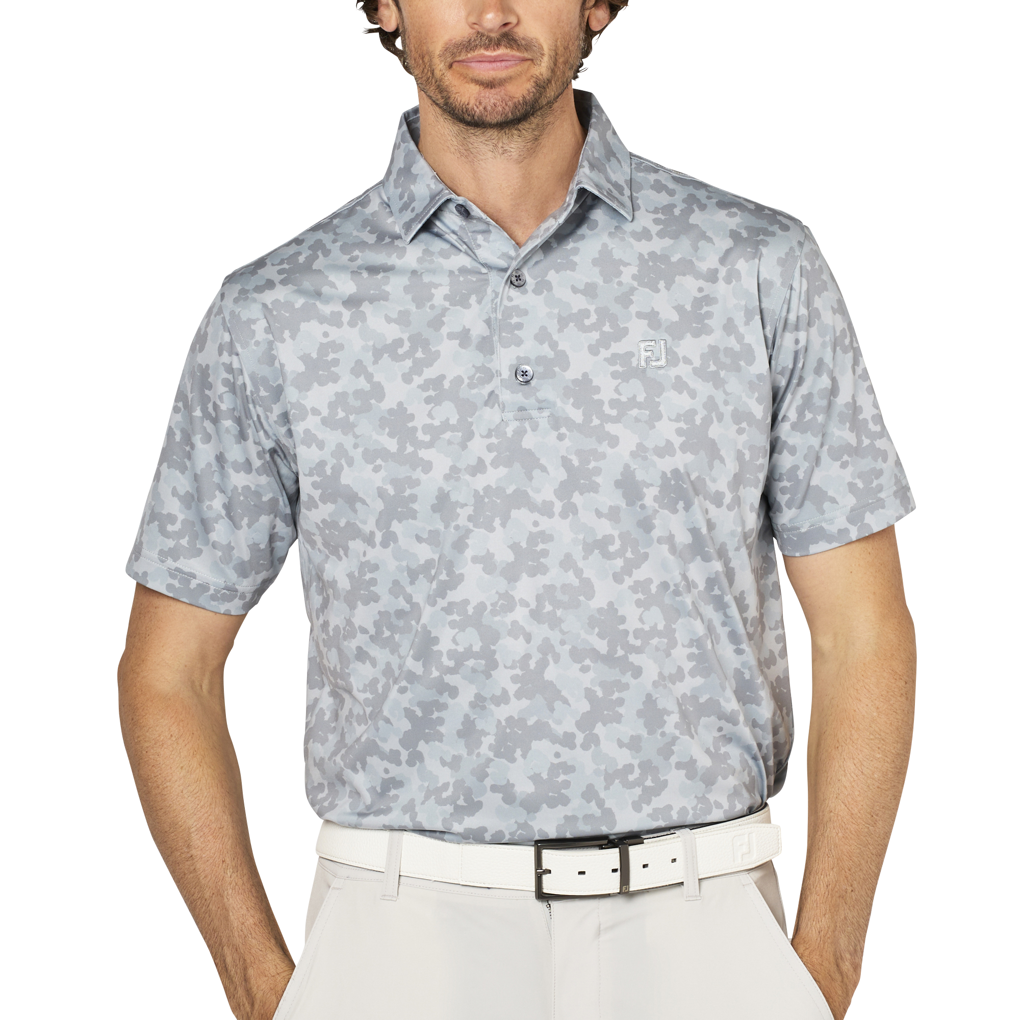 ポップなカモフラージュプリントが、ゴルフウェアとしてのスポーティさと遊び心を演出。シンプルながらも個性的で、ゴルフコースで目を引くデザインです。肌触りがなめらかで、UVケア、抗菌機能も備えストレスのないスイングをサポートします。