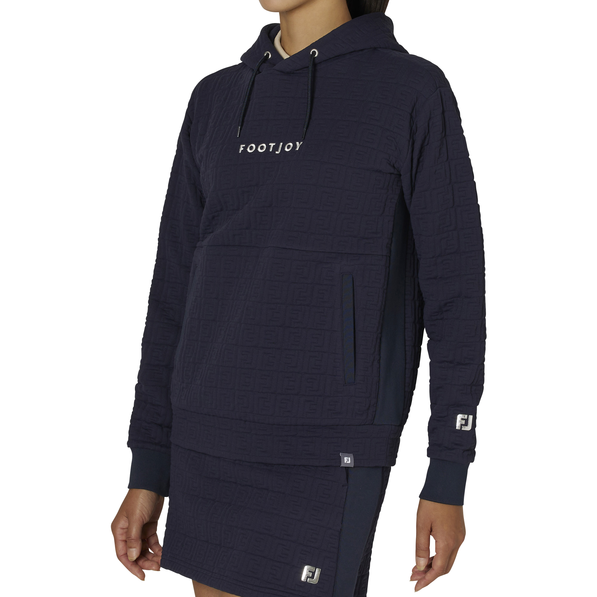 ストレッチ性が高く耐久性のある素材を採用した長袖プルオーバーフーディー。総柄のFJロゴをキルティング加工で表現したデザインがポイント。脇部分にリブを使用することでよりスイングのしやすい仕様にしました。