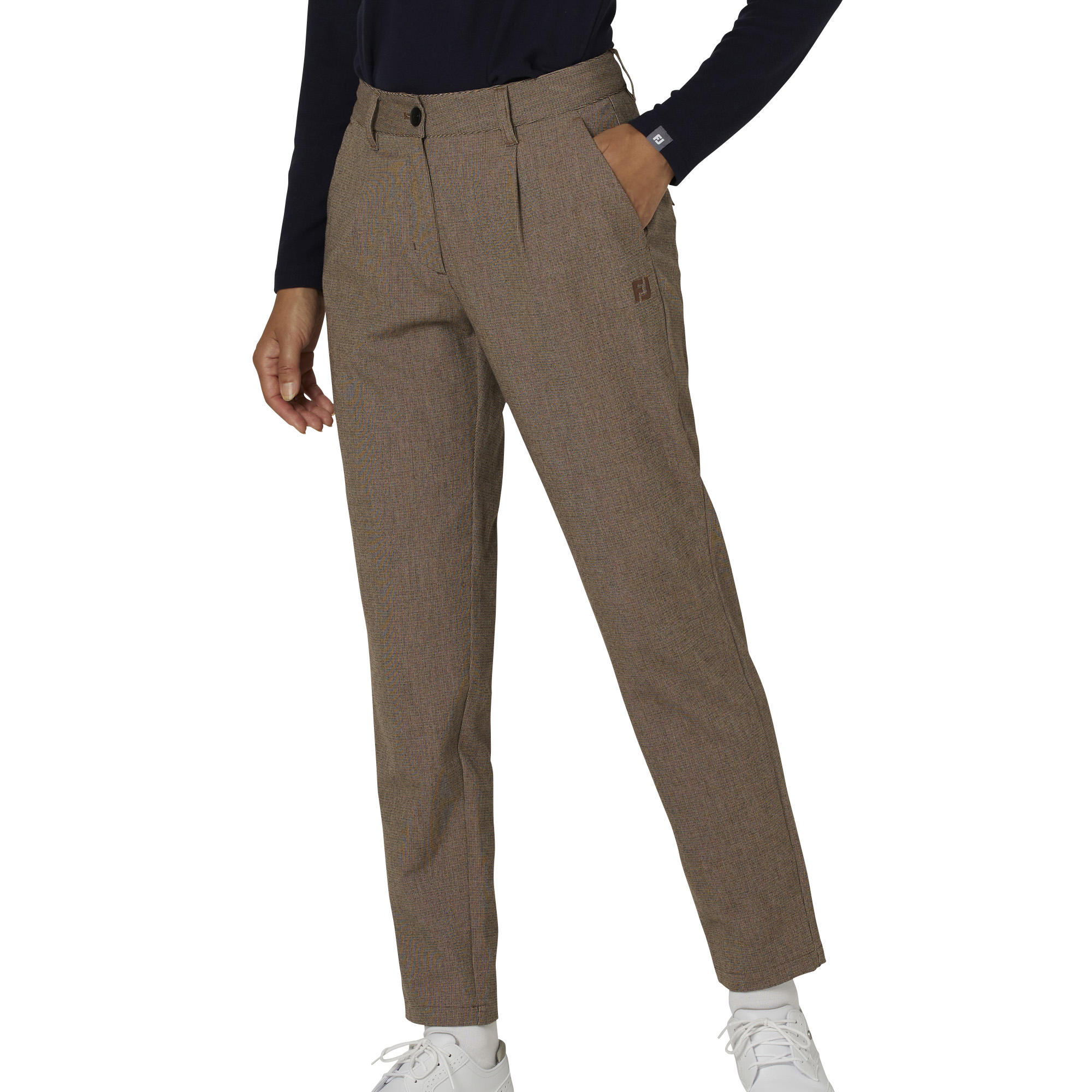 マイクロチェックのデザインが上品さを表現し、ワンタックと緩やかなテーパード具合が特徴のストレッチロングパンツ。柔らかい起毛素材を使用しているため肌触りが良く、秋から冬にかけてゴルフだけでなく普段使いにも適したクラシカルな1枚です。