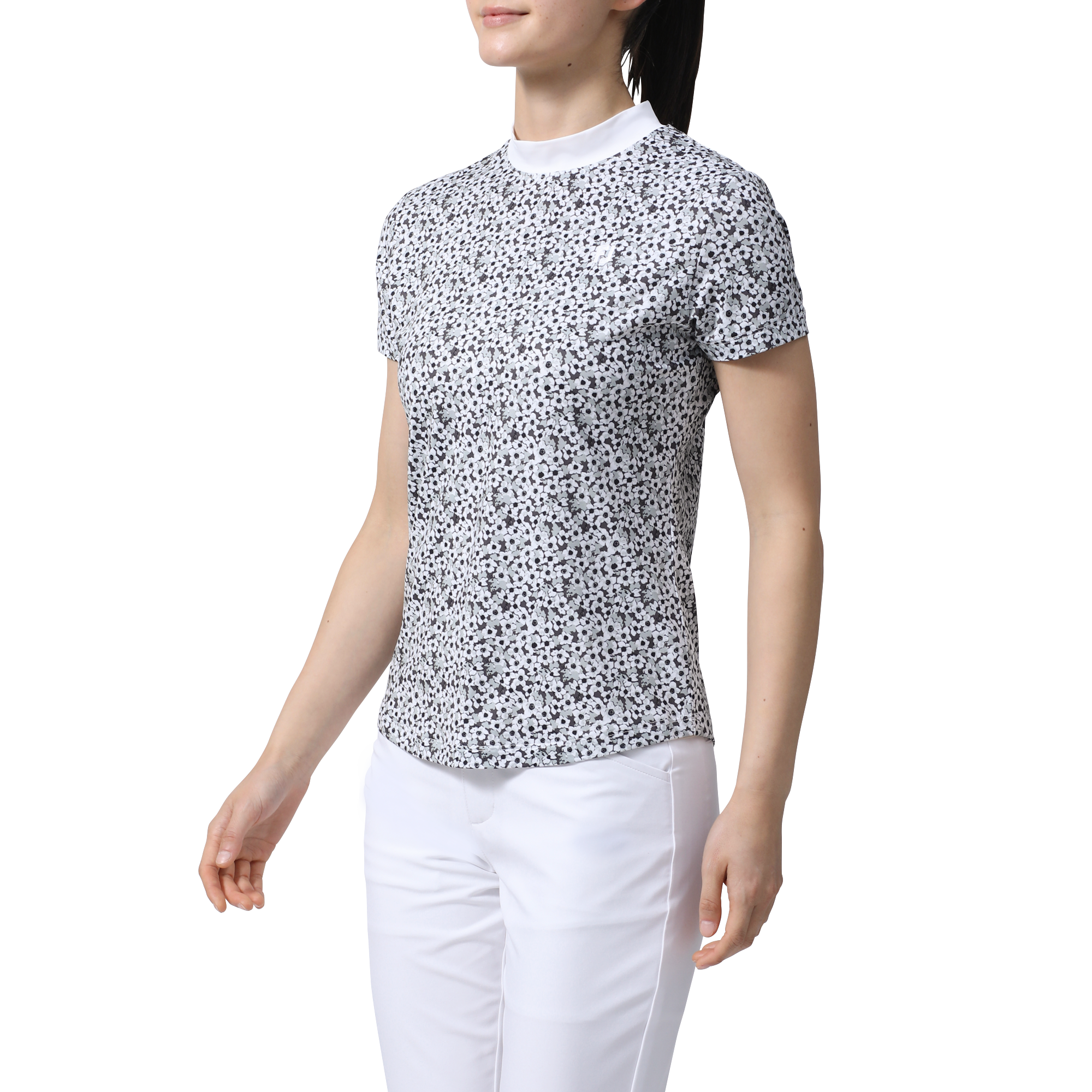 フットジョイが誇る高ストレッチ素材を使用した半袖モックネックシャツ。肌触りに優れたなめらかな表面感はストレスの無い快適なスイングを可能にします。繊細なサクラソウ柄が春のプレーをより華やかにする1枚です。