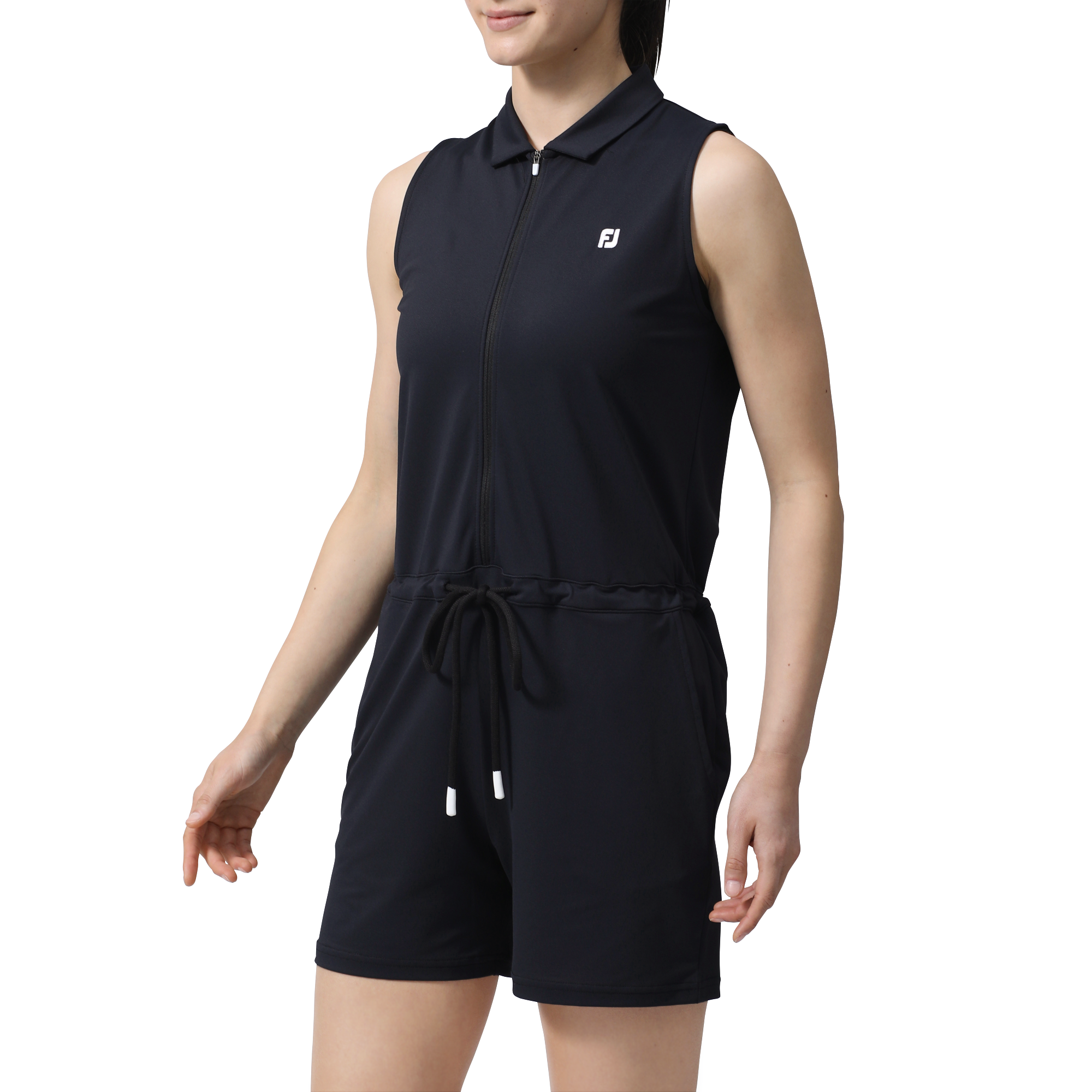フットジョイが誇る高ストレッチ素材を使用したノースリーブロンパース。繊細な鹿の子素材がストレスの無い快適なスイングを可能にします。このアイテム1枚で、春夏のコーディネートに差をつけるアイテムです。