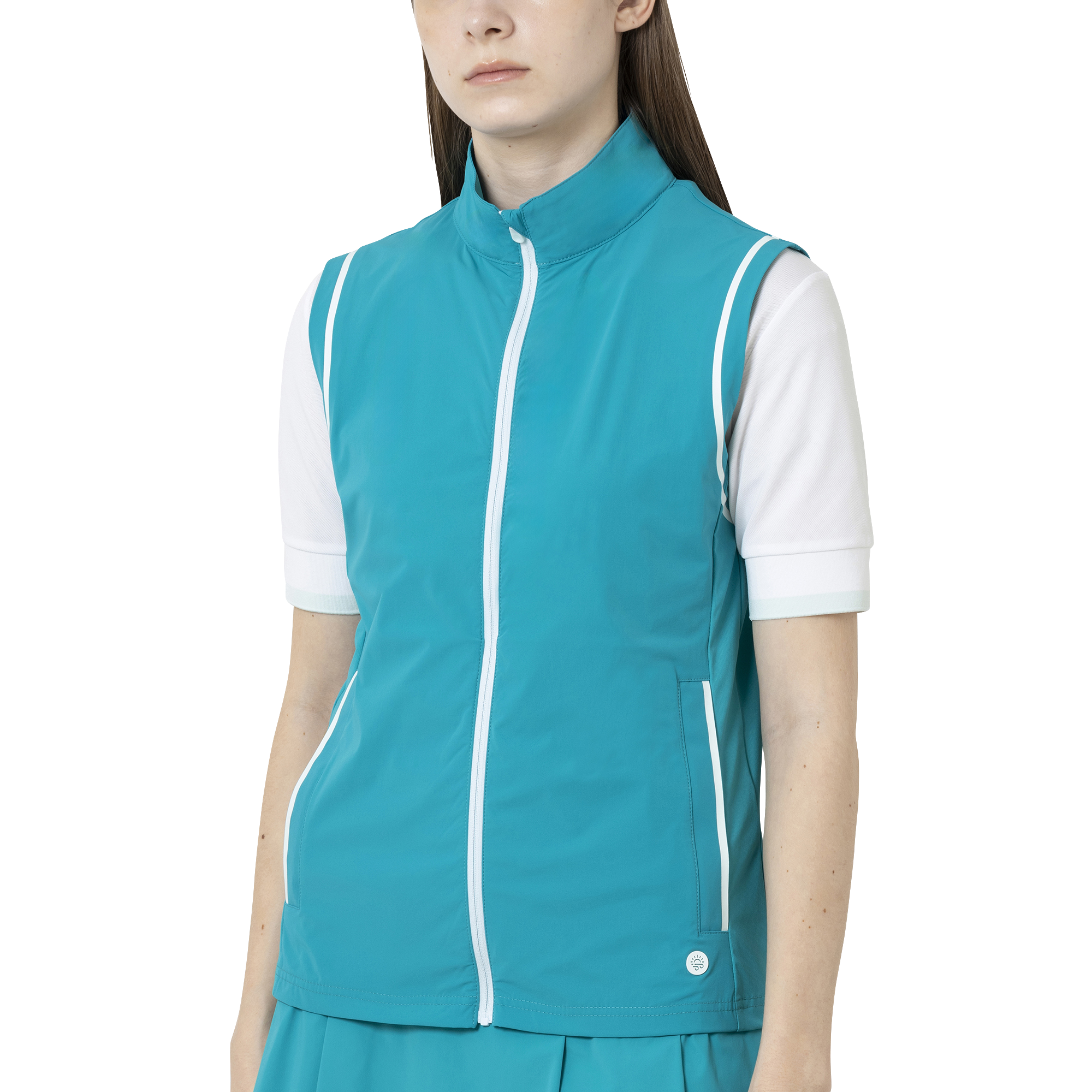 撥水加工を施した防風素材と速乾性で、風や気温の変化にも対応。ストレッチ素材がスムーズなスイングをサポートします。アームホールの圧着テープが通気性とフィット感を高め、長時間のラウンドでも快適な着心地をキープ。