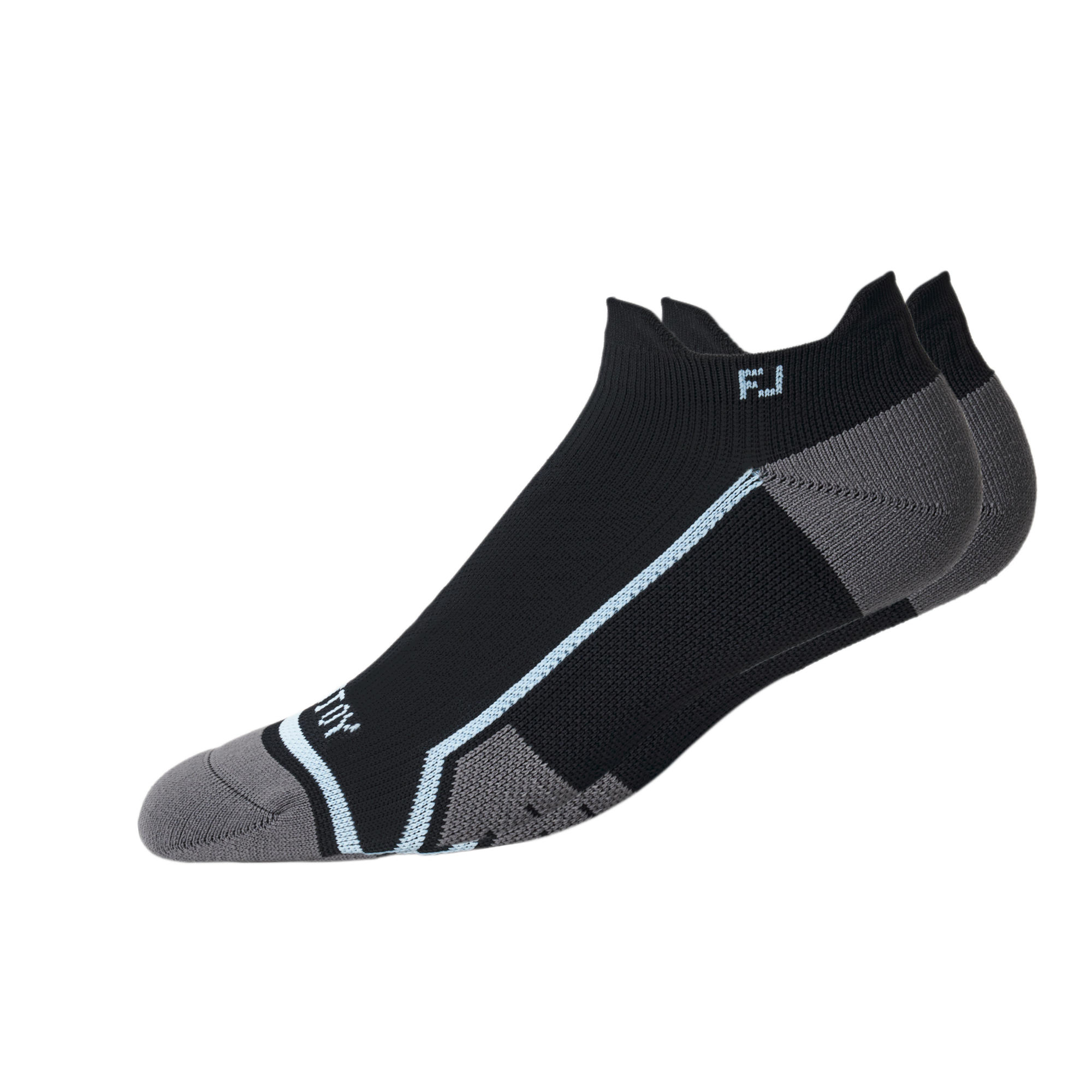 全体的に編み組織を工夫しコンプレッション機能を持たせたフィット性重視のソックス。足裏のパイル編みでクッション性を向上しています。